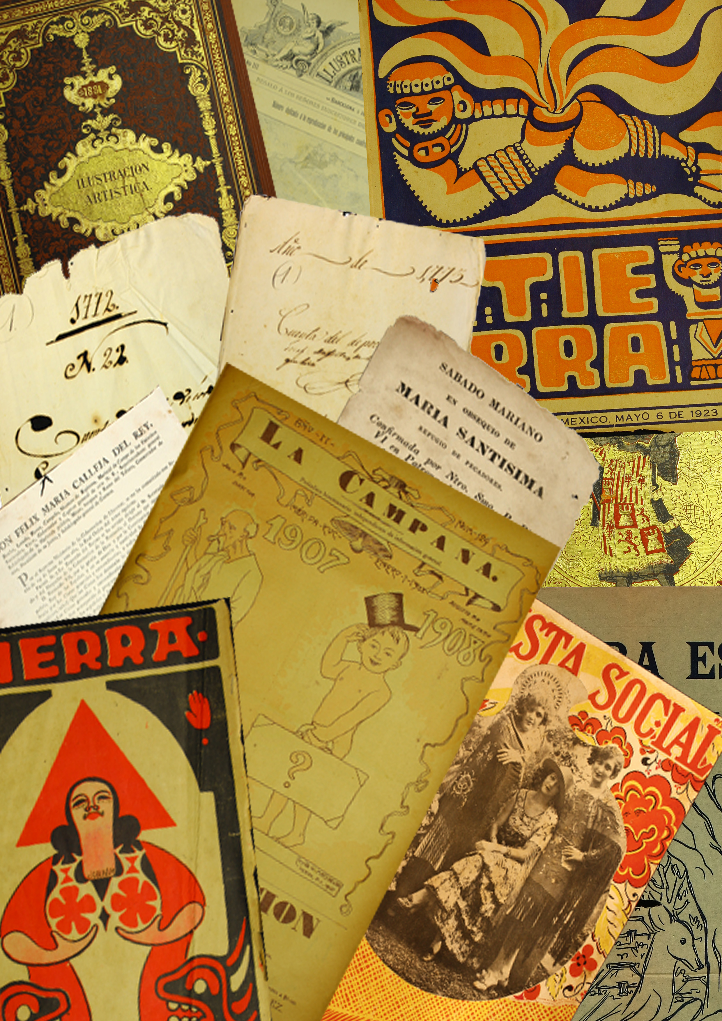 Este grupo documental está conformado por 23 volúmenes encuadernados que recopilan cientos de documentos, manuscritos e impresos, sin un orden preciso ni una temática establecida. En su mayor parte se refieren a la historia colonial de Yucatán. Podemos mencionar documentos sobre comercio, embarcaciones, hacienda pública, expedientes judiciales, reales cédulas, educación, iglesia, comunidades indígenas, milicia y administración pública en general.4.- Hemeroteca Histórica